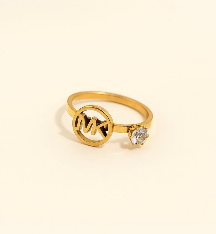 Elevate your everyday look with the Golden MK ring a signature piece that blends luxury with subtle charm. Crafted in a warm golden tone, it features the iconic MK emblem paired with a sparkling stone that adds just the right touch of sophistication. Whether worn solo or stacked, this ring speaks style with every glance.